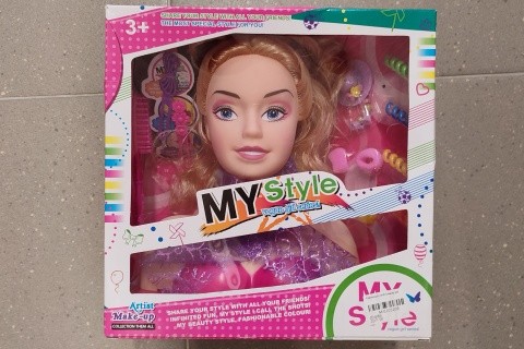 Česací hlava s doplňky. Obsahuje 2 hřebeny, gumičky, sponky a další doplňky. Rozměry balení cca 27 x 27,5 x 12,5 cm. Věk 3+