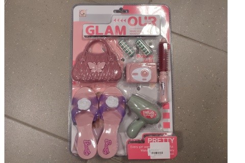 Sada krásy obsahuje střevíčky, kabelku, fén, žehličku na vlasy, hřeben a další doplňky. Rozměr balení cca 44,5 x 30 x 6 cm. Věk 3+