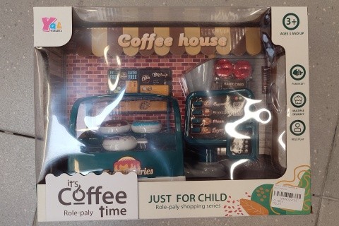 Plastová kavárna s pokladnou, chladničkou se třemi donuty a dalšími doplňky. Rozměr balení cca 30 x 23,5 x 12 cm. Věk 3+