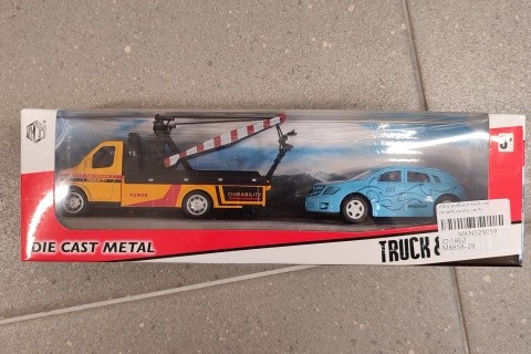 Kovový model odtahovky s osobním autem. Rozměr odtahovky cca 11,5 x 5 x 4 xm,rozměr auta cca 8 x 3 x 3,5 cm. Rozměr balení cca 23,5 x 7 x 6 cm. Věk 3+