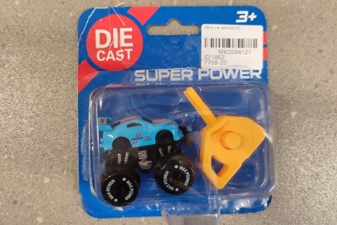 Kovové autíčko o rozměru cca 4 x 3,5 cm s vystřelovacím zařízením. Rozměr balení cca 11,5 x 10,5 x 4 cm. Věk 3+