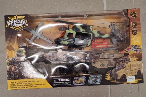 Velká vojenská sada obsahuje tank, vrtulník, dron, motorku, bunkr s kulometem, dva vojáky a další doplňky. Rozměr balení cca 60 x c33 x 12,5 cm. Věk 3+