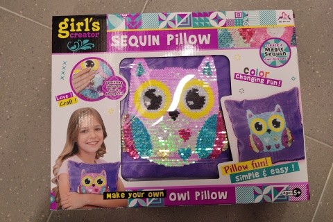 Sada na výrobu polštáře obsahuje povlak od polstáře, bavlnu, jehlu a nit. Součástí je také návod k použití. Rozměry balení cca 37,5 x 29 x 5,5 cm. Věk 5+