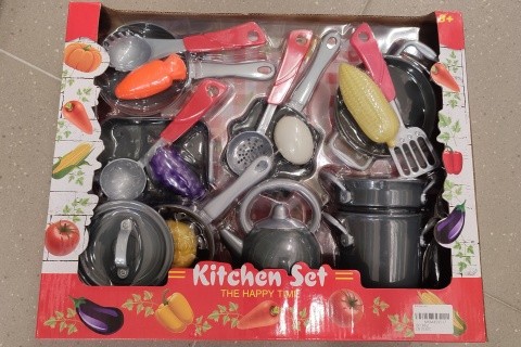 Sadana nádobí obsahuje rendlík s pokličkou, hrnec s cedníkem, konvici, pekáč, 2 pánve, wok a další doplňky a potraviny. Rozměr balení cca 39,5 x 31,5 x 11,5 cm. Věk 3+