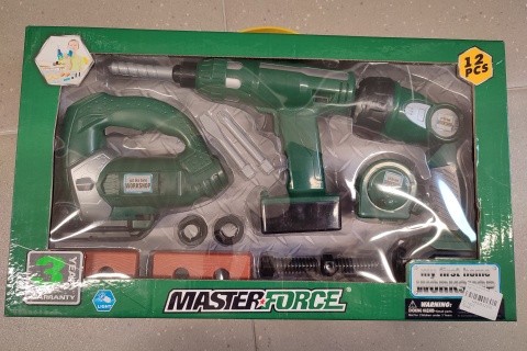 Sada nářadí na baterie obsahuje vrtačku, přímočarou pilu, svítilnu, metr a další doplňky. Napájení 2x AA baterie do každého nářadí - nejsou součástí. Rozměr balení cca 45 x 26 x 8 cm. Věk 3+