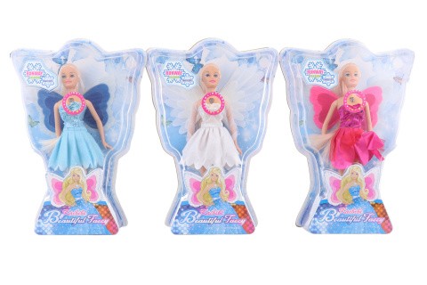 Plastová panenka víla na baterie o velikosti cca 29cm. Po stisknutí knoflíku se panence rozsvítí křídla. Baterie 3x AG13 jsou součástí balení. Rozměr balení cca 32,5 x 24 x 6,5 cm. Věk 3+