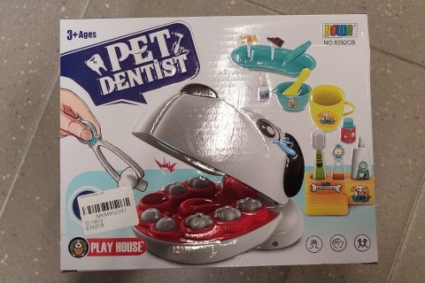 Tato sada umožní dítěti okusit roli skutečného zubaře a postarat se o zdravý úsměv nejen tohoto pejska, ale i medvídků a panenek z celého pokojíčku. Sada pomůže vašemu dítěti vytvořit zdravé návyky související s péčí o dutinu ústní. Plastová čokoláda a bonbony mohou sloužit jako perfektní příležitost k vysvětlení, že cukr negativně ovlivňuje zdraví zubů a často způsobuje kazy. Hraní se sadou také umožní vytvořit pozitivní vztah k zubaři a sníží strach, který by mohl nastat před návštěvou zubaře. Technické specifikace: Materiál: plast. Počet prvků v sadě: 17 ks Rozměry hlavy: 18 x 12,5 x 16 cm. Napájení zrcátka s osvětlením: 2x 1,5V AG10 nejsou součástí. Rozměr balení cca 20 x 16 x 16,5 cm. Věk 3+