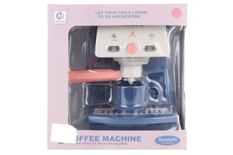 Plastový kávovar na baterie. Napájení na 2 AA baterie (nejsou součástí). Kávovar vydává zvuky a svítí stejně jako při přípravě kávy. Kávovar o velikosti 16,5 x 17 cm. Rozměry balení cca 19 x 20 x 12,5 cm. Věk 3+