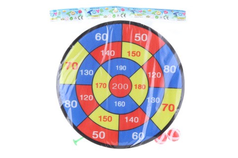 Terč na suchý zip o velikosti cca 35,5 cm se dvěma míčky a dvěma šipkami. Rozměry balení cca 37 x 39 cm. Věk 3+