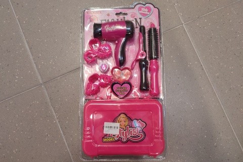 Kadeřnická sada s kufříkem obsahuje fén, hřeben, kulmu, skřipce, kufřík a další doplňky. Rozměr balení cca 40 x 21,5 x 6 cm. Věk 3+