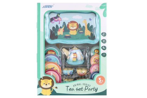 Plechový čajový set. Balení obsahuje konvičku, tác, 4 hrnečky, 4 podšálky a 4 talířky. Rozměry balení cca 30,5 x 40,5 x 9 cm. Věk 3+