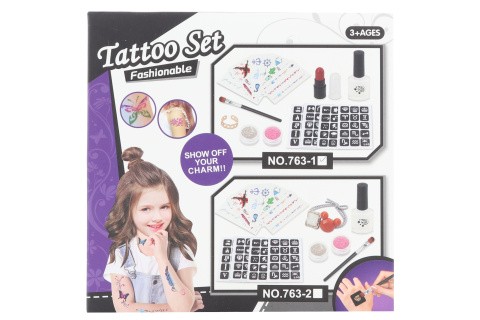 S touto tetovací sadou můžete vytvořit krásné třpytivé tetování na každý den. Balení obsahuje 5 archů tetování, rtěnku, šablony, třpytky, štěteček a tetovací gel. Rozměry balení cca 18,5 x 18,5 x 2,5 cm. Věk 3+
